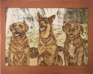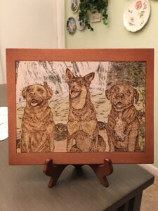 Custom Woodburning of a Pet Portrait by local artist Dale Werner Now Available!
