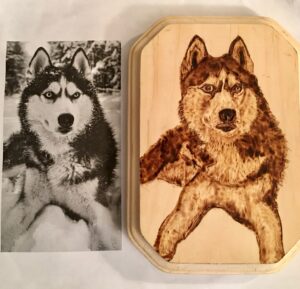 Local artist will create a custom woodburning from a pet portrait or photograph!